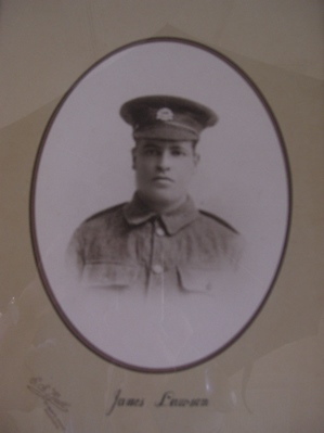 Owing to having a slight speech impediment, James was refused entry to the Army several times. Eventually accepted into the Bedfordshire Regiment, he received training at Dovercourt then transferred to the Northamptonshire Regiment. After three months’ service in France, he was wounded by shrapnel in September 1916 and invalided home. He returned to France in March 1917, came home on leave after 11 months and was killed two months after returning to the front.